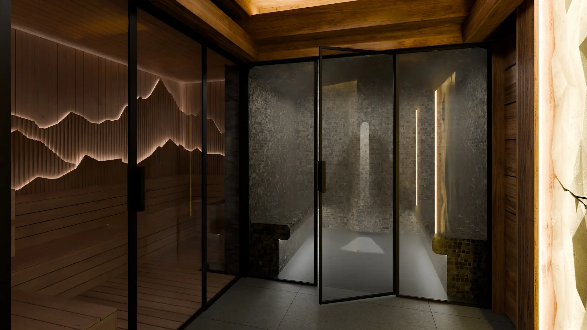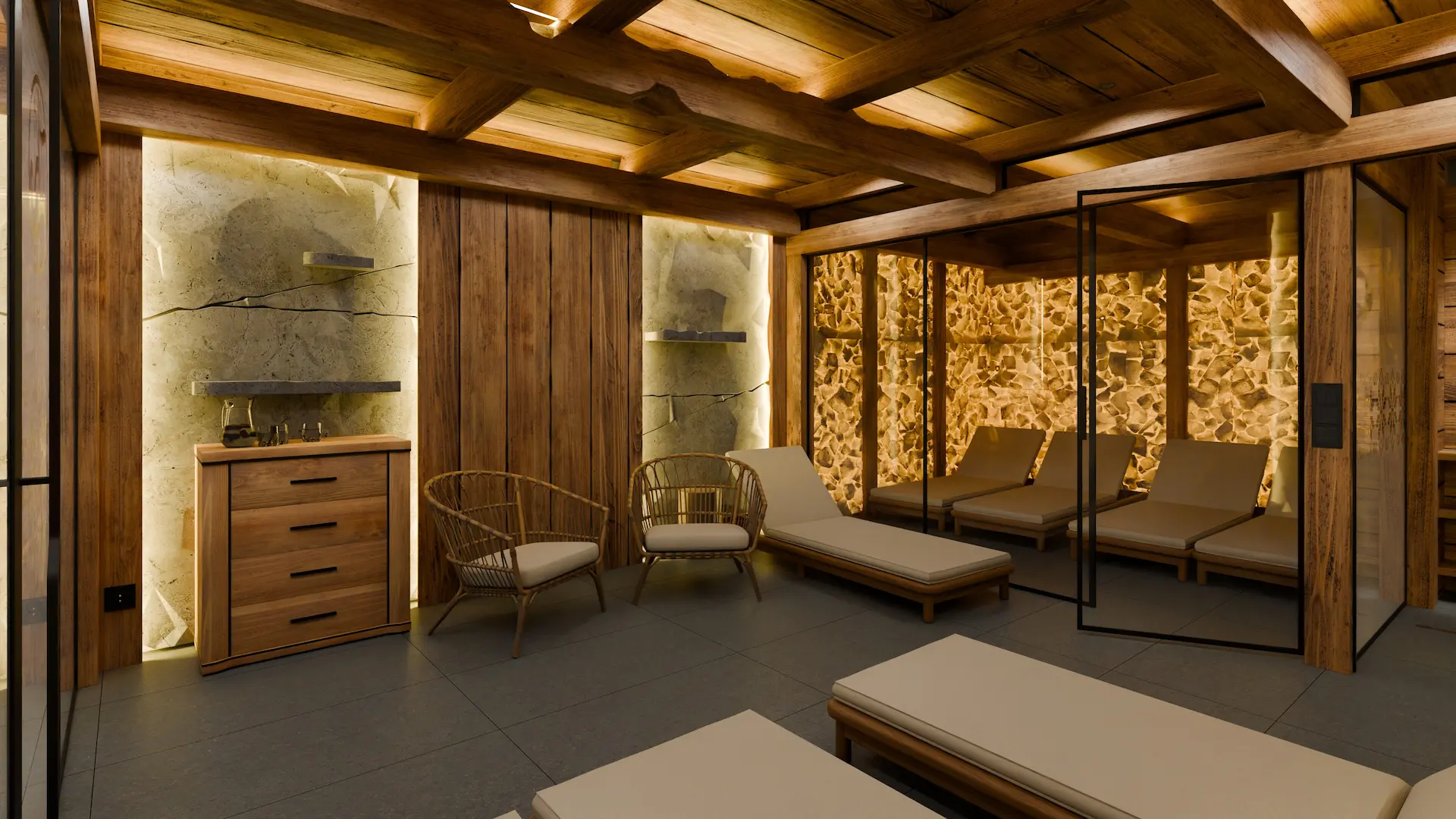 Strefa SPA to przestrzeń, w której harmonia natury, ciepło drewna oraz subtelne światło tworzą wyjątkowe warunki do odpoczynku i regeneracji, z dala od codziennego pośpiechu.